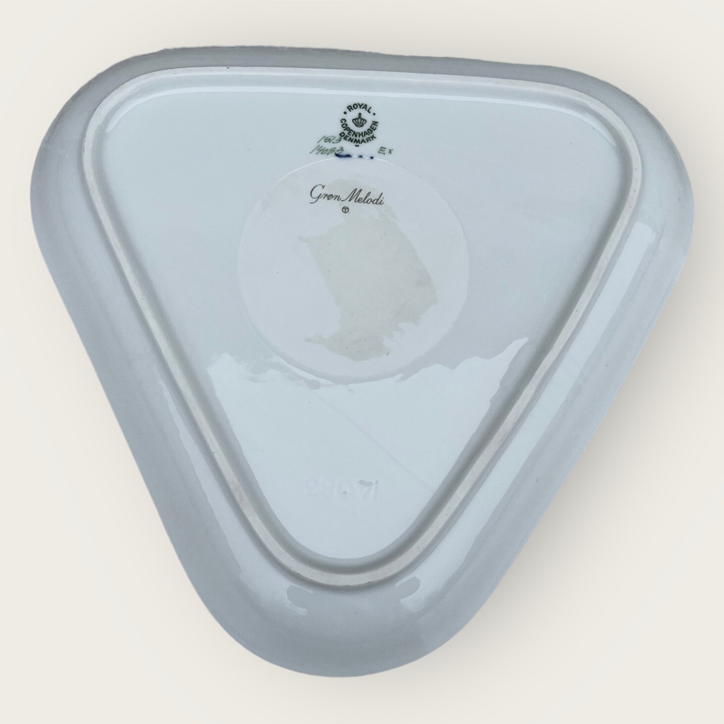 Royal Copenhagen, Grøn melodi, Trekantet fad #1513 / 1403, 23cm bred, 1.sortering, design Thorkild Olsen *Med brugsspor*