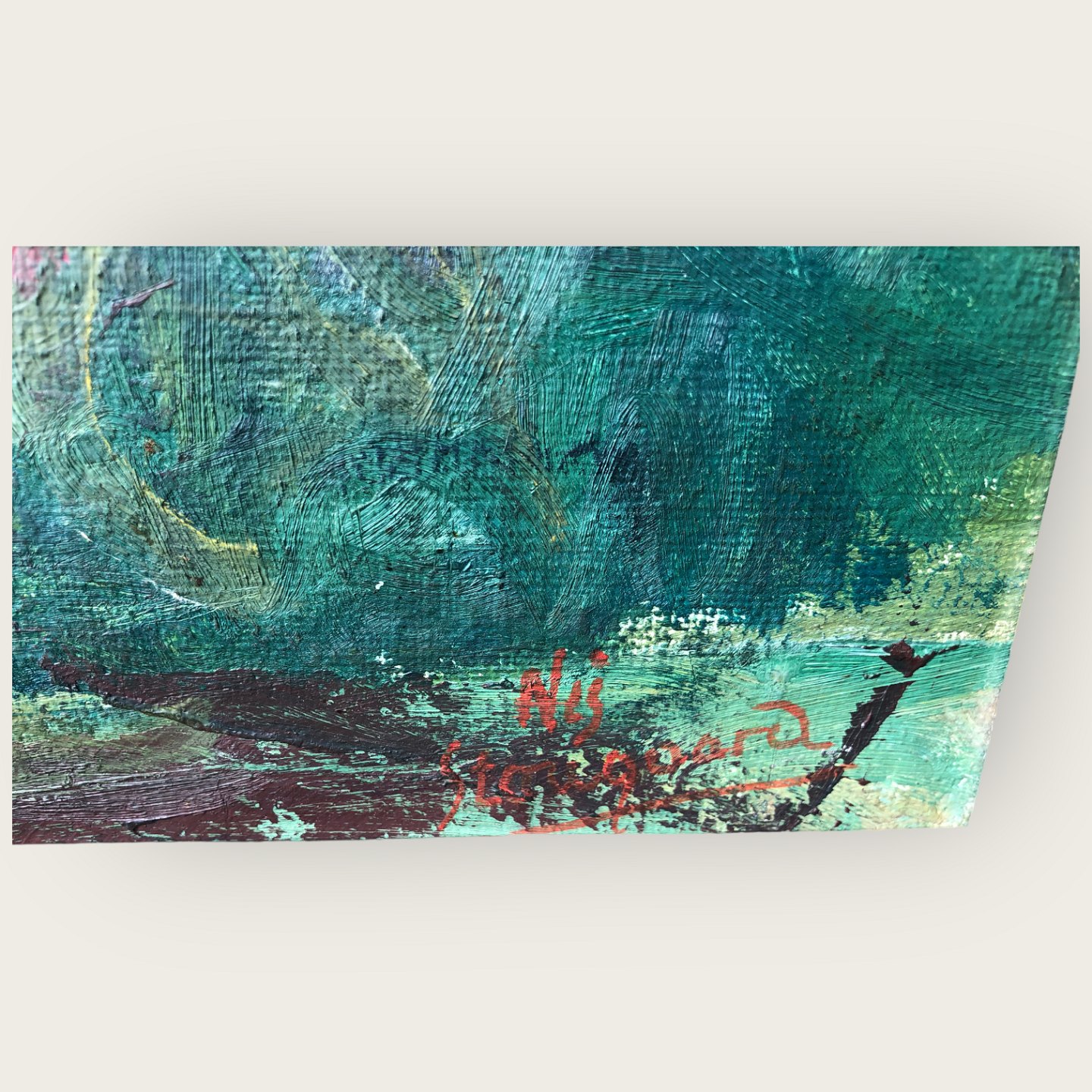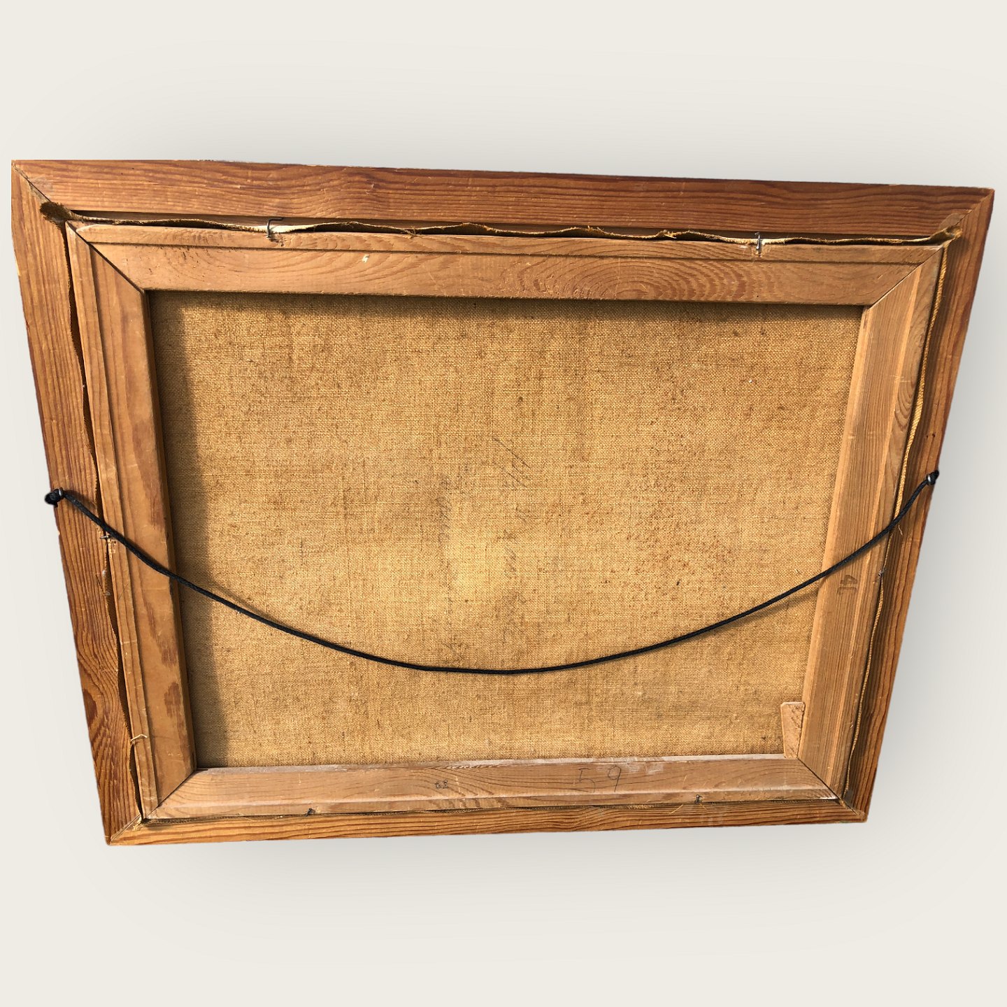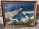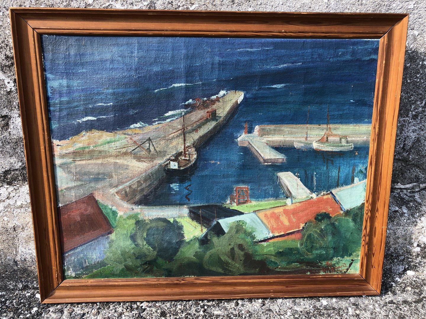Nis Stougaard, Maleri på lærred, motiv fra havn på Bornholm. Mål med ramme 66,5x53,5 cm