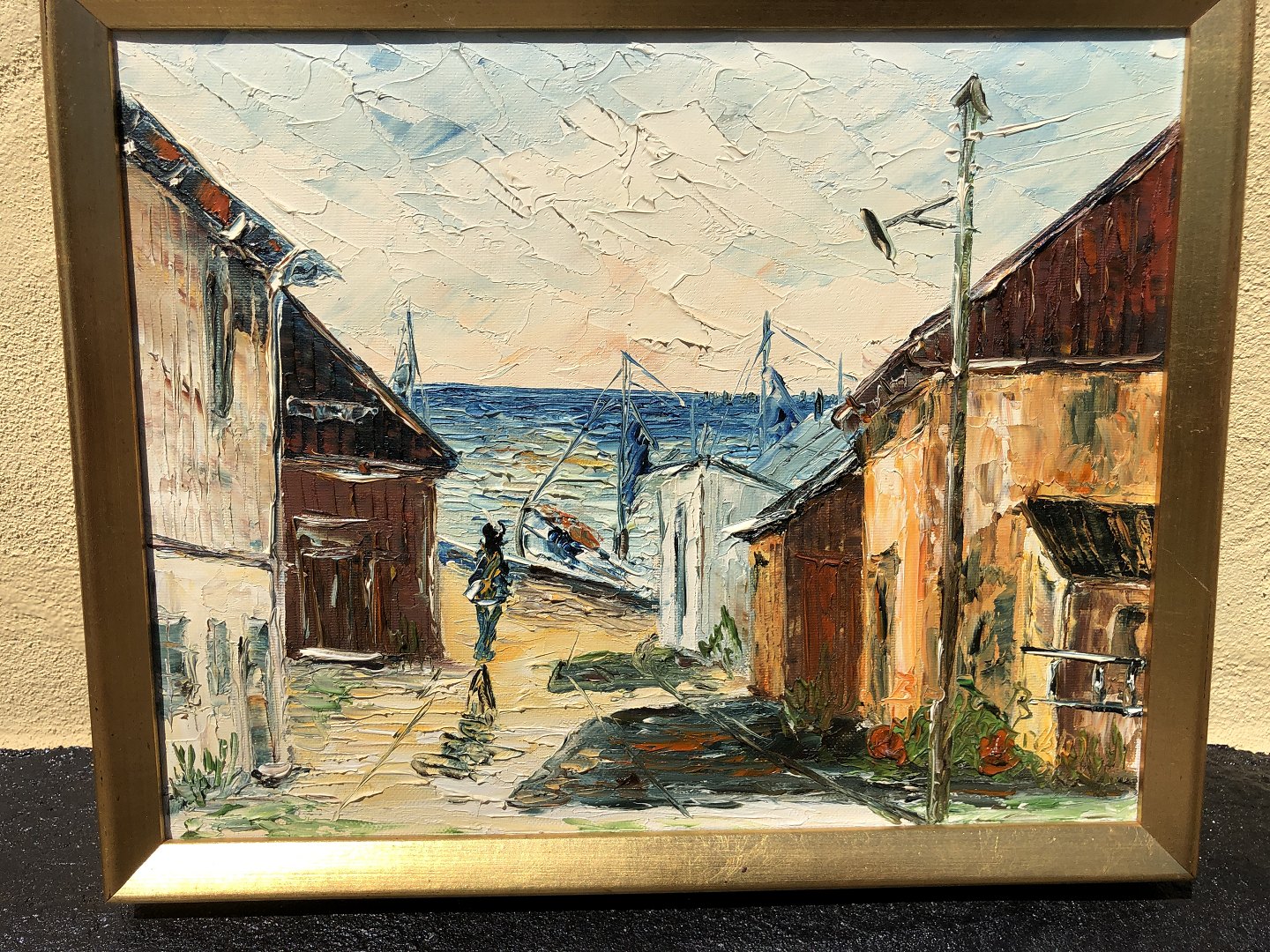 Hillestrøm, Bent Bertram olimaleri på lærred, Motiv fra Gilleleje Havn. Mål med ramme: 32x26 cm.