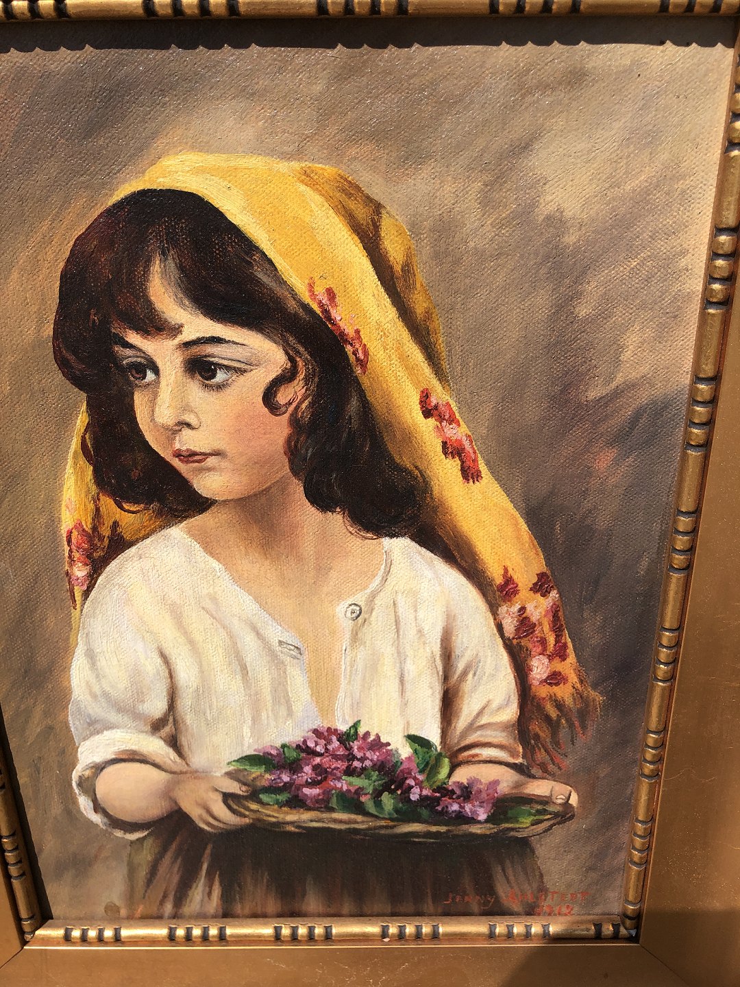 2 olimalerier på lærred, det ene signeret: Jenny Ahlstedt 1912. Hvert maleri måler med ramme 41x33 cm