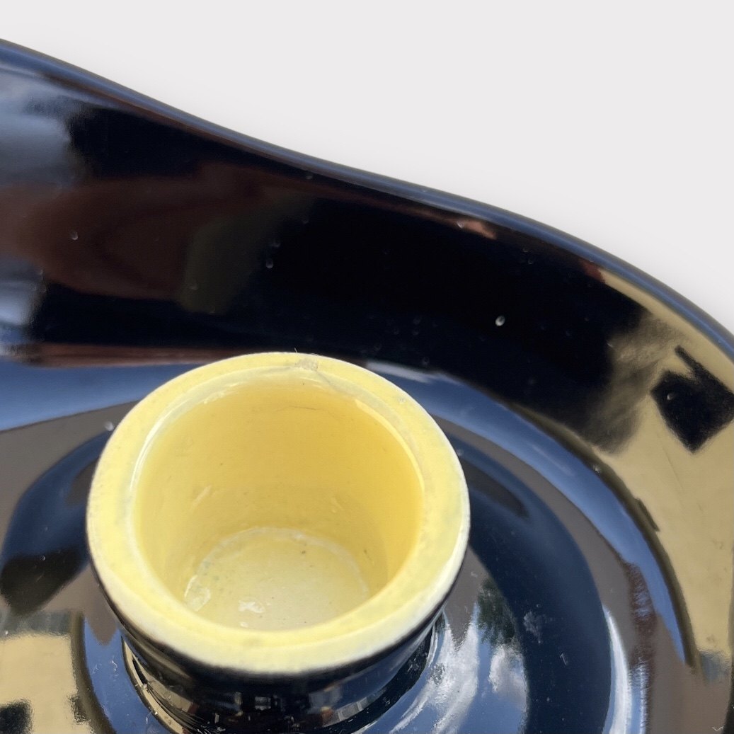 Retro lysestage, Sort & gul, 22cm bred, 6cm høj *Med lille skade på den ene lysemanchet*