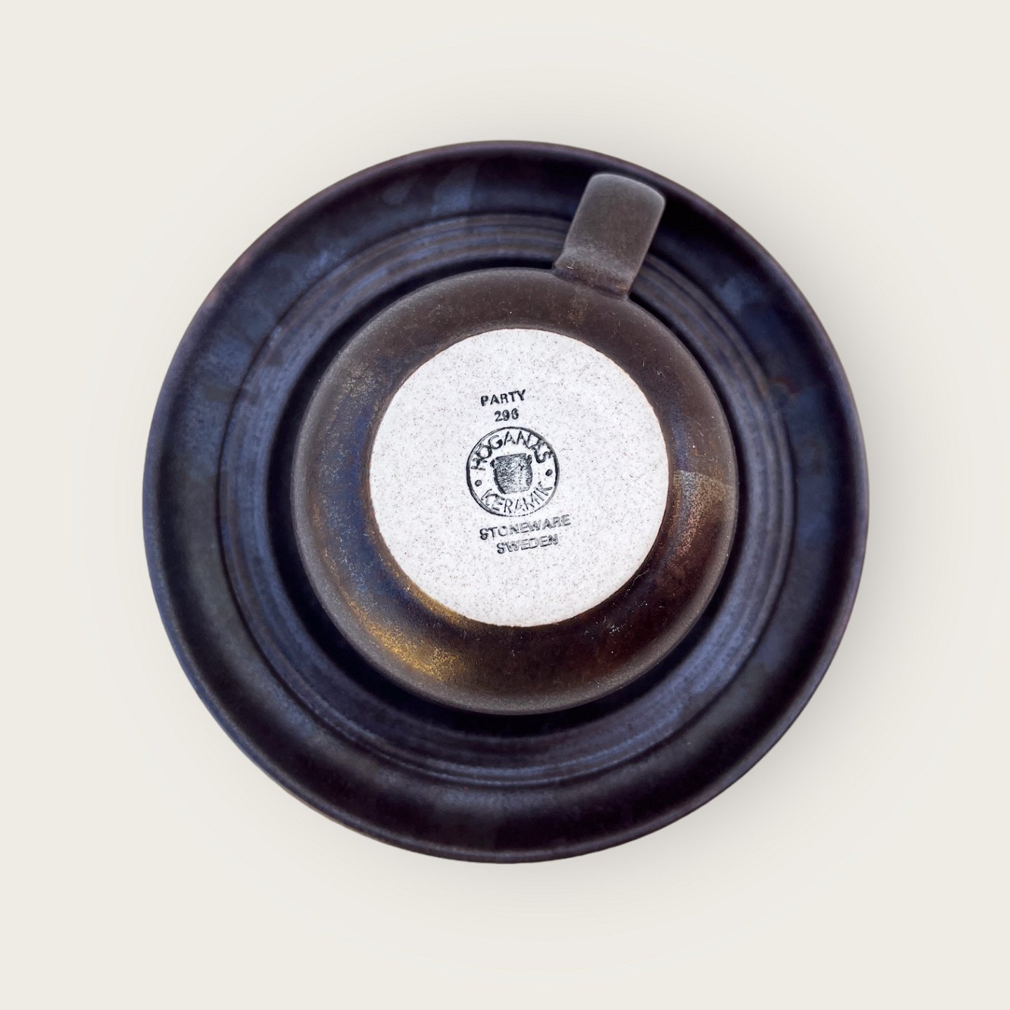 Höganäs, Stentøj, Kaffekop med underkop, 8,5cm i diameter, 5,5cm høj *Pæn stand*