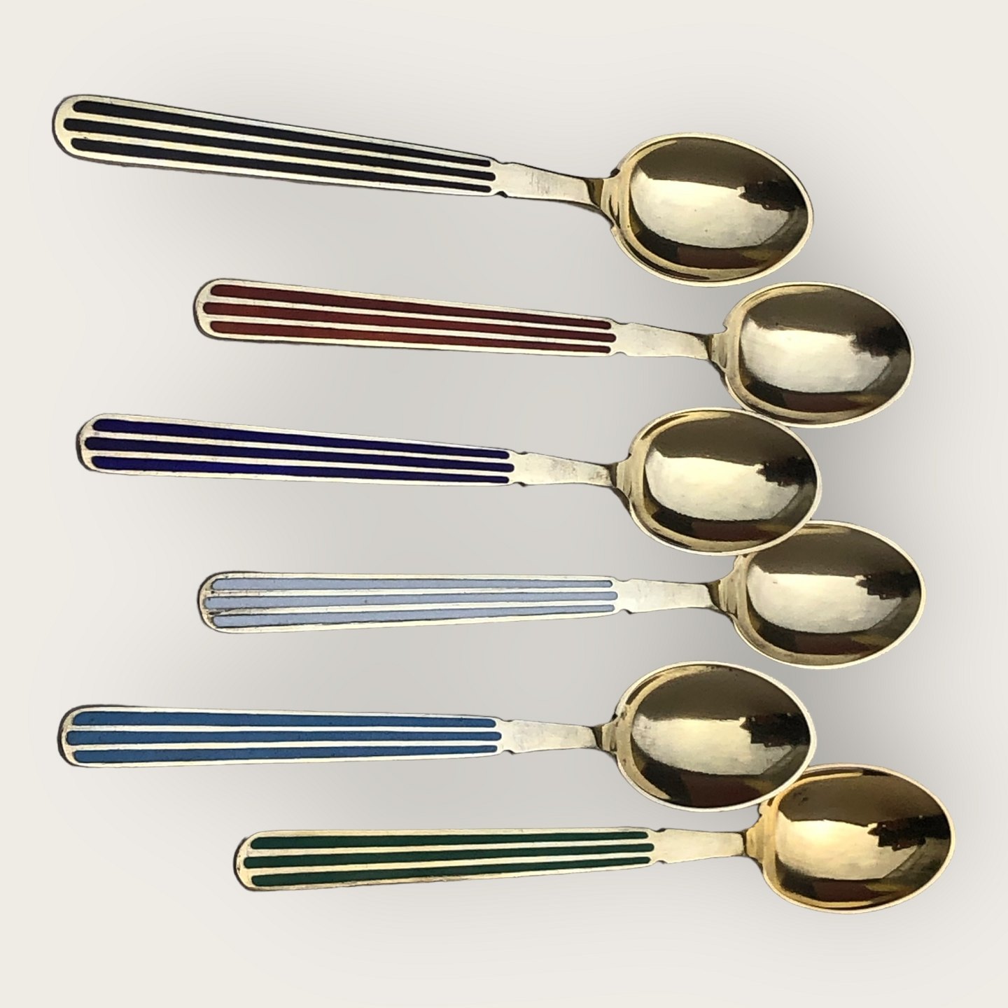 Mocca spoons / teaspoons, Anton Michelsen gold-plated sterling silver, nice used condition, 10cm long.