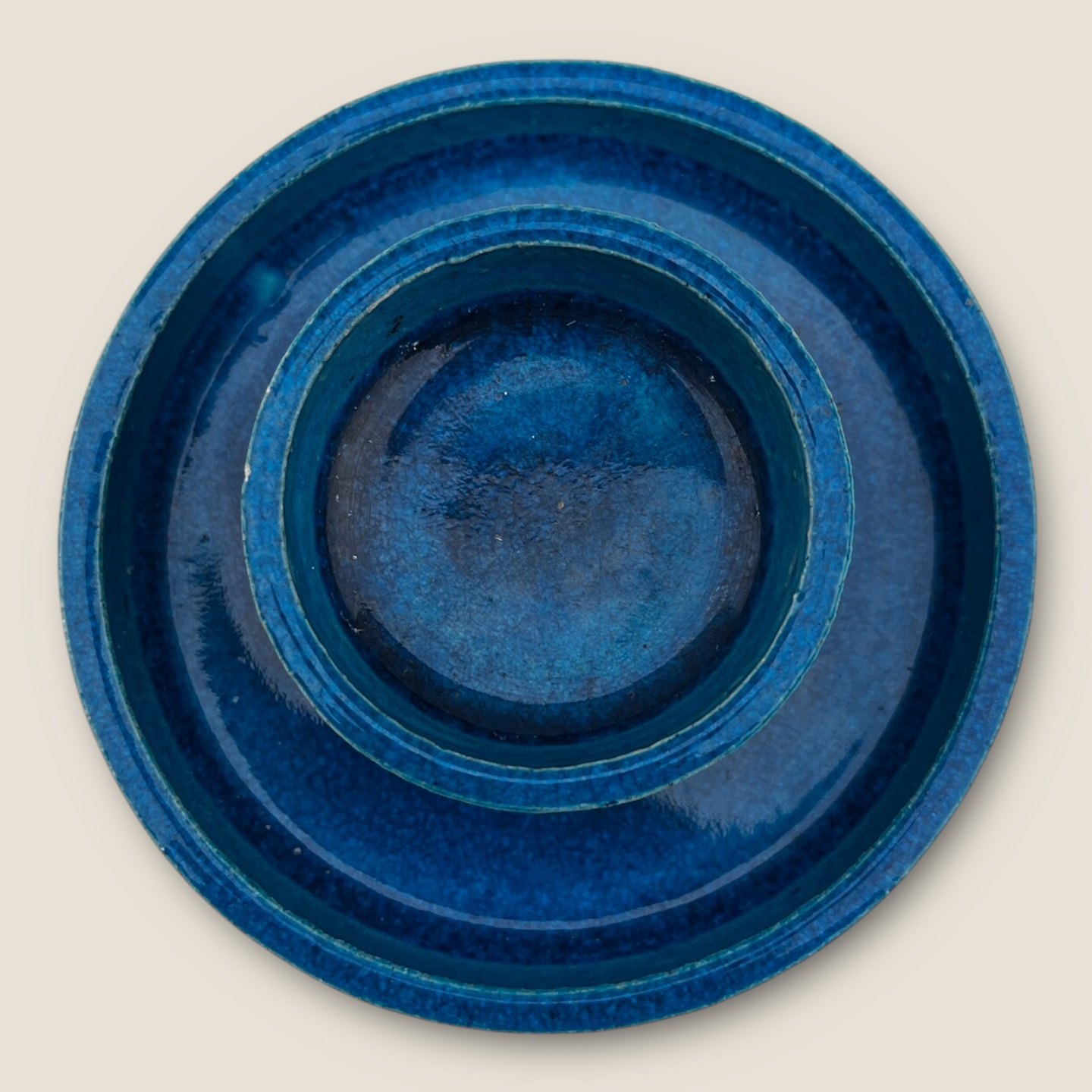 Kähler keramik, Blåglaseret lysestage, 12cm i diameter, 6cm høj, Nr. 103- 12 *Med et meget lille hak på siden*