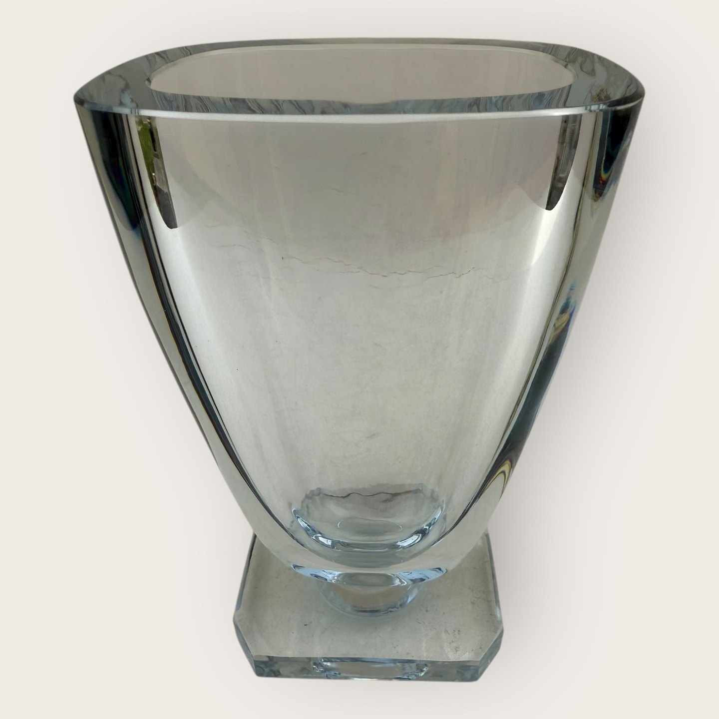 Stromberg glasbruk, Sverige, vase på fod i klart glas, pæn stand, Mål: 16x10x7,5 cm