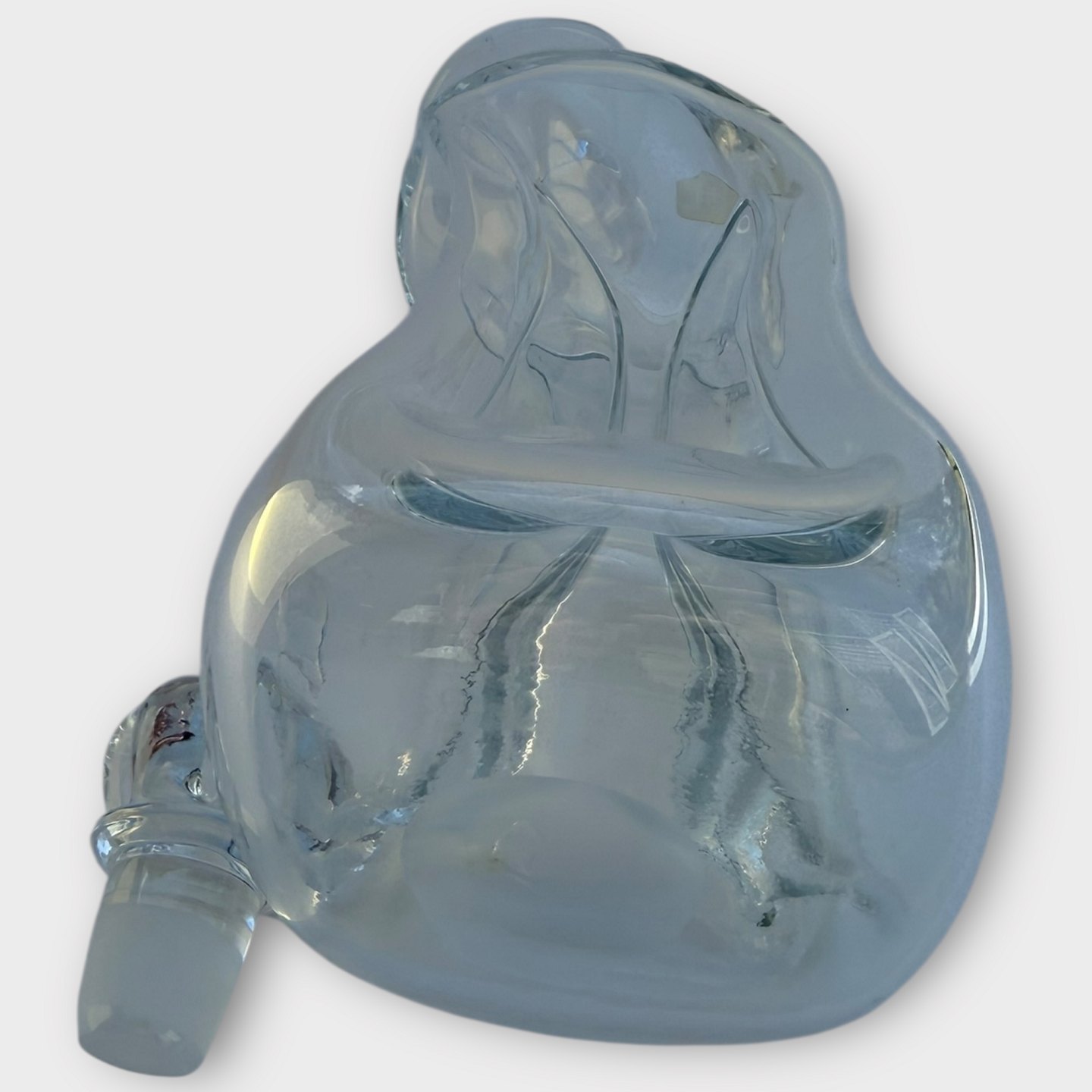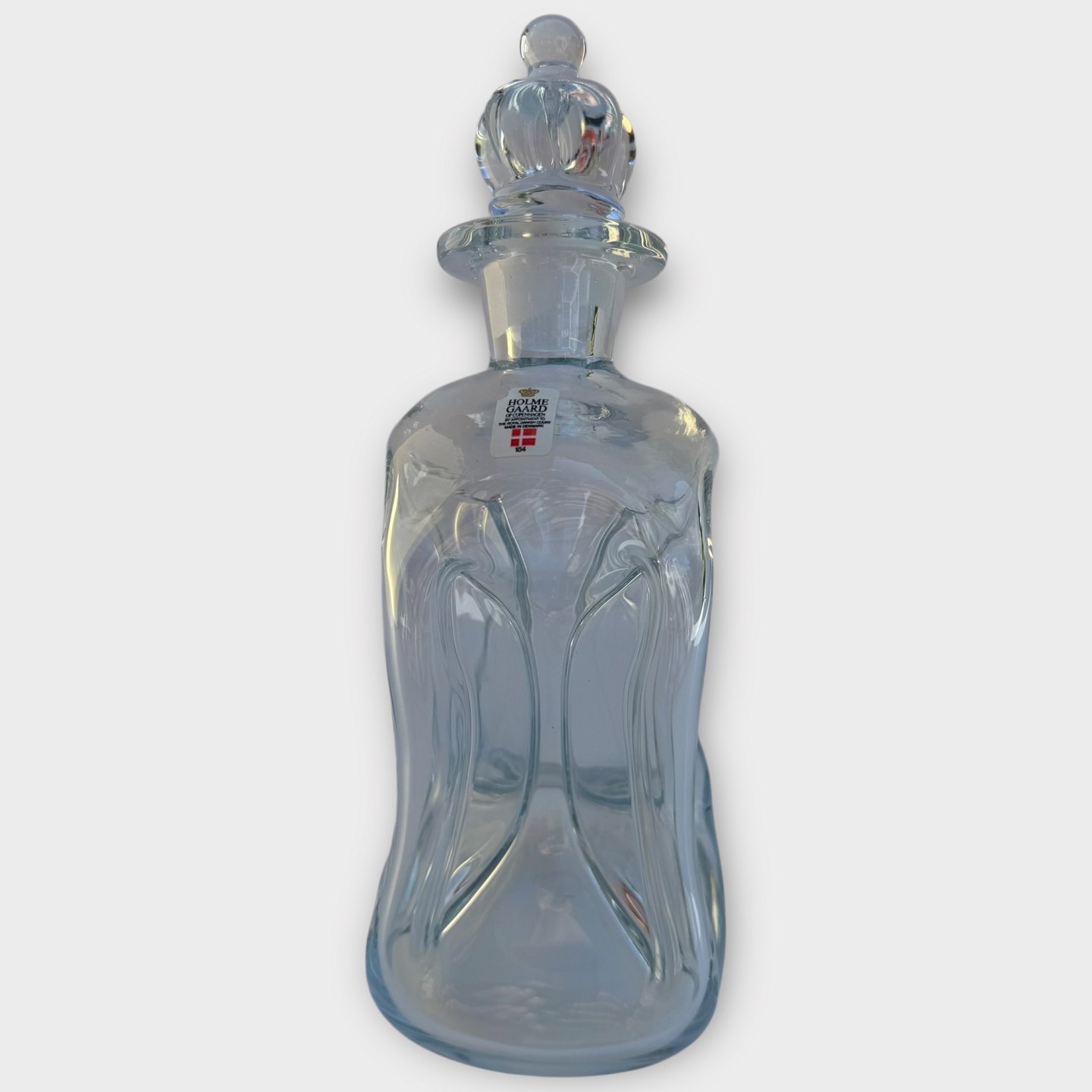 Holmegaard, Cluck bottle with crooked shape, clear and with crown stopper, 24cm high *Good condition*