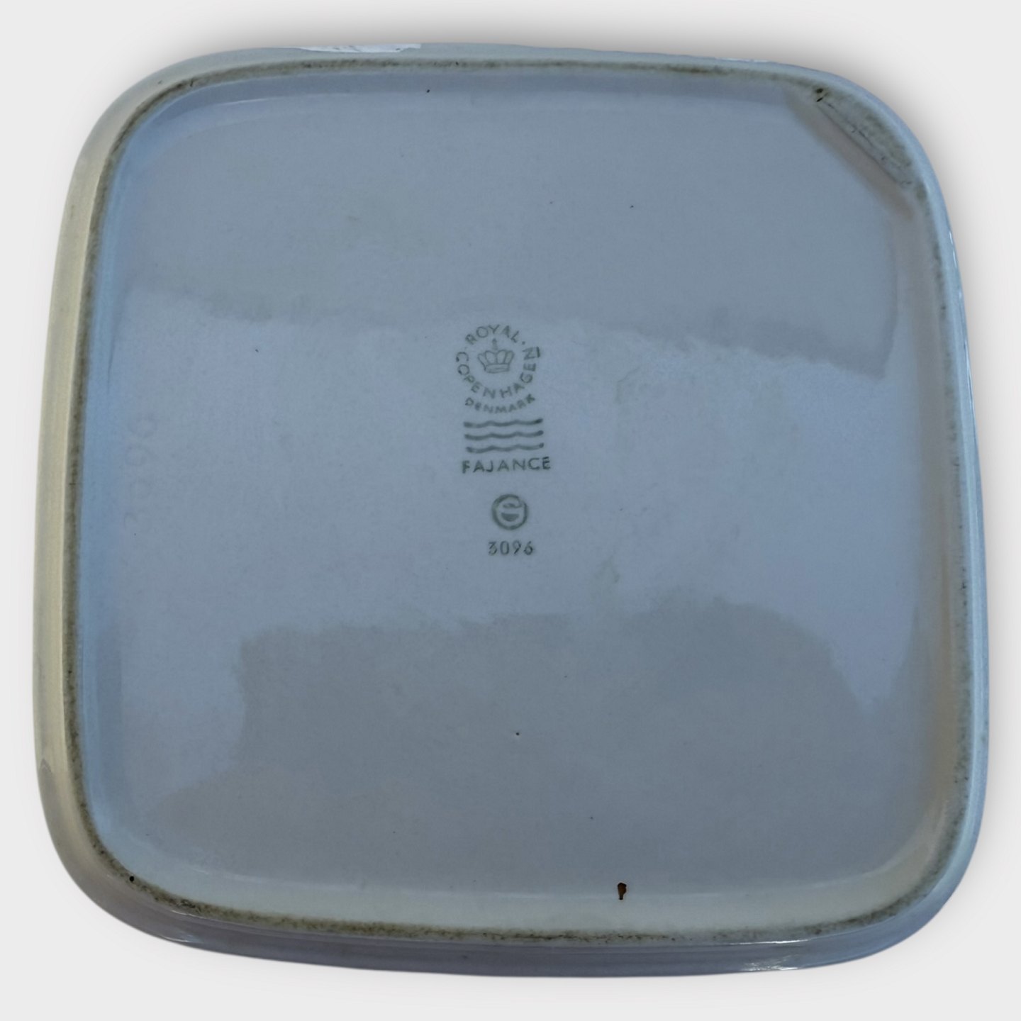 Royal Copenhagen, Aluminia, Blå kant, Kvadratisk fad #3096, 15x15cm, Design Grethe Meyer *pæn stand*