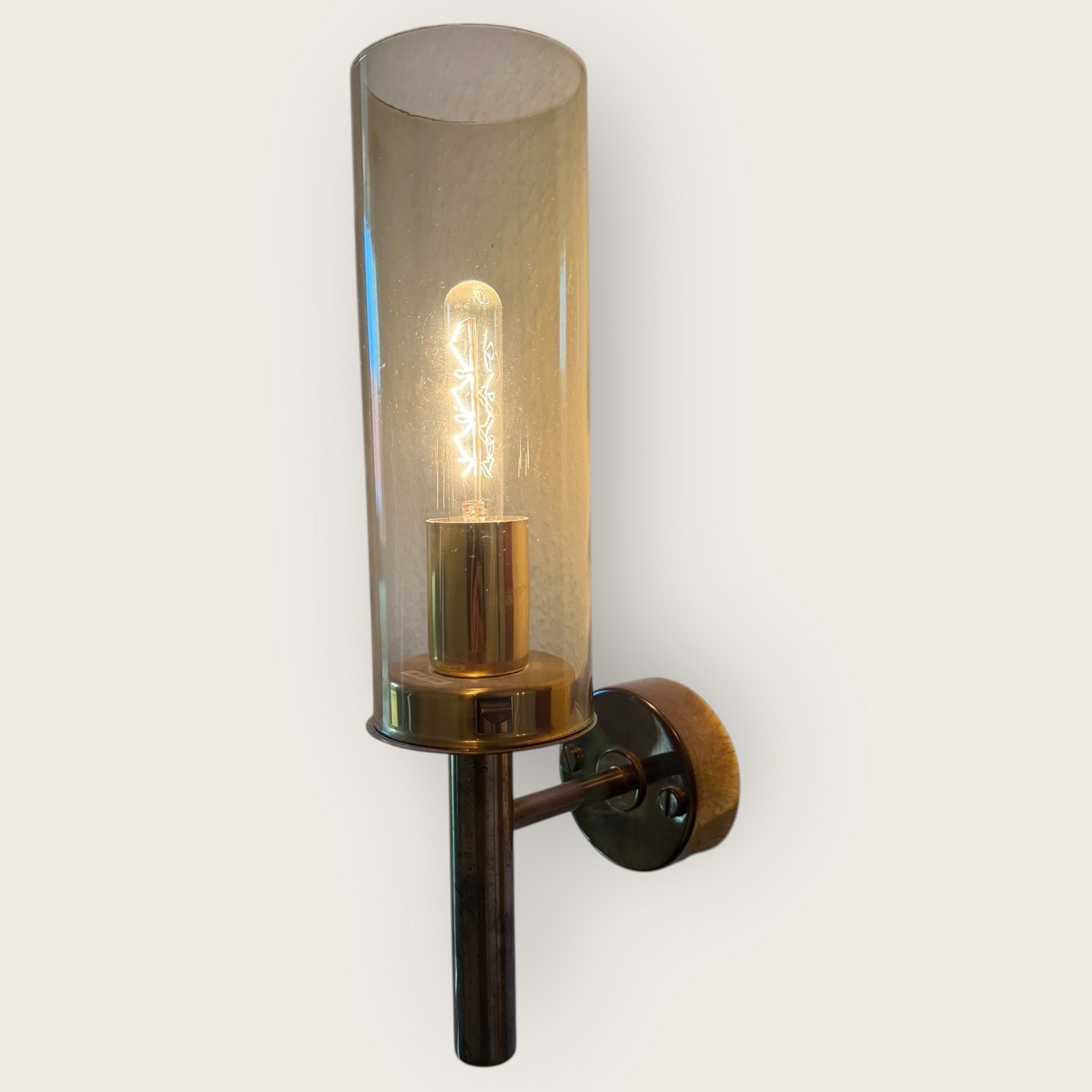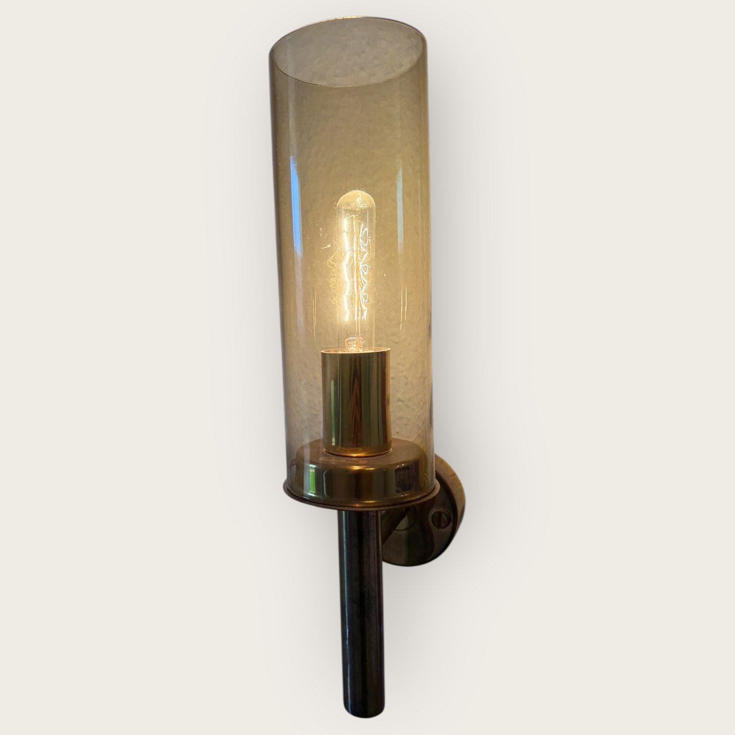 Hans-Agne Jakobsson, Væglamper i glas og messing, Model: V169/1, Markaryd, Sverige, Højde med glasskærme 37cm * Pæn stand*