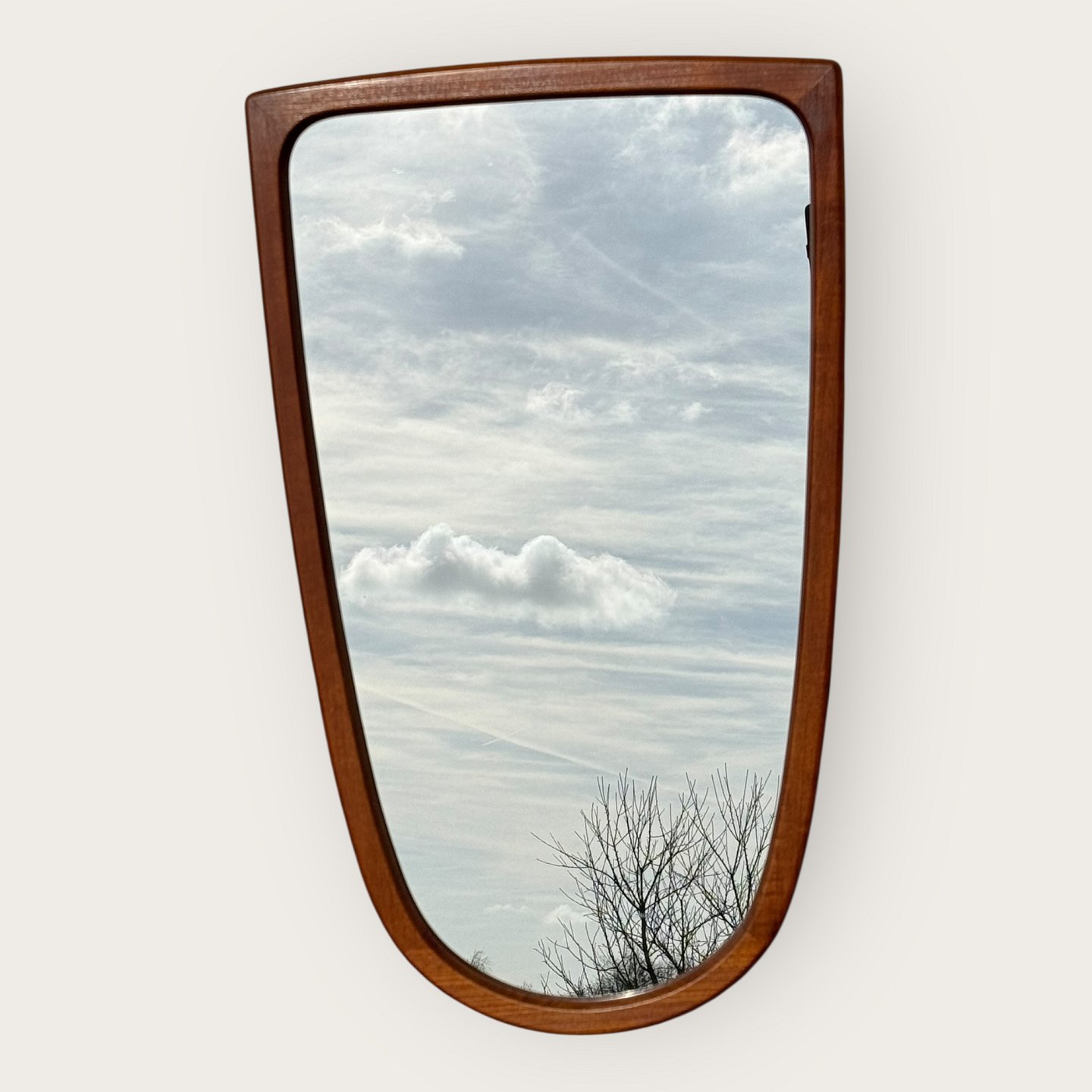 Spejl i ramme af teaktræ med flot facon, Danish modern fra 1960'erne, Pæn stand, Mål: 75x46cm *Pæn stand*