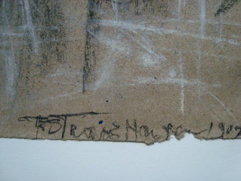 Kul og oliekridt(pastel) på håndgjort papir.