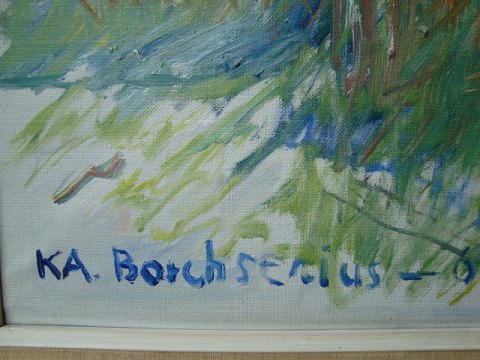 Knud Aage Borchsenius (1921-2005): Klitparti fra Lønstrup 1968. Olie på lærred. Sign.: KA Borchsenius - 68 Betegnet - Lønstrup 1968. 42x69 (53x80)