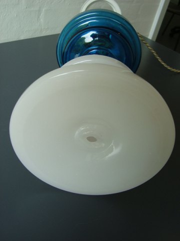 Fod af hvid opaline og petroleumsholder af transperent turkis glas.