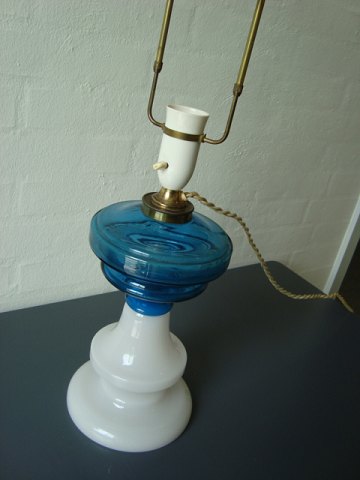 Fod af hvid opaline og petroleumsholder af transperent turkis glas.