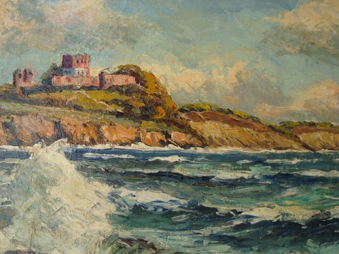 Hammerknuden med Hammershus og store bølger på Bornholm.