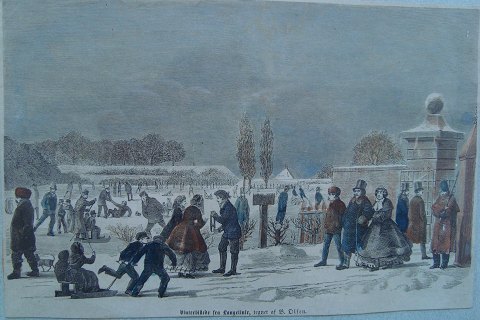 Tekst - Vinterbillede fra langeline - Tegnet af B. Olsen.