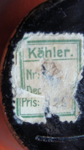Keramik med orange uran glasur og sort bund.