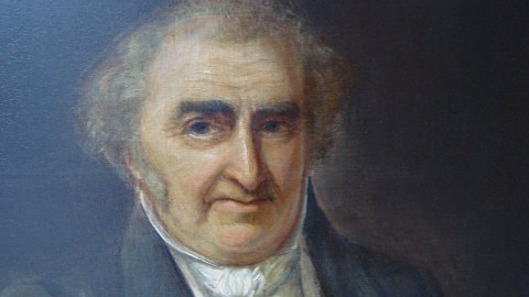 Halvfigursportæt af ældre mand i kjole og hvidt med 2 danske ordenskors af Dannebrogsordenen.