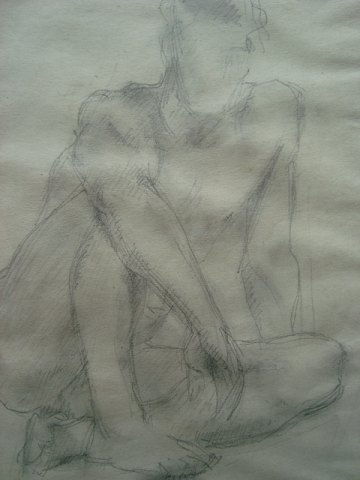 Nøgen, siddende, mandlig croquismodel.