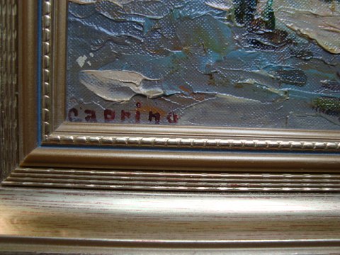 Kai Drews (1884-1964): Sydlandsk byparti med personer. Olie på lærred monteret på plade. Sign.: Caprino 30x42 (41x52)