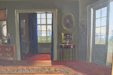 Ubekendt kunstner (20 årh): Interiør fra stue. Olie på lærred. Sign.: Fischer (måske, meget utydeligt) 55x65 (67x77)
