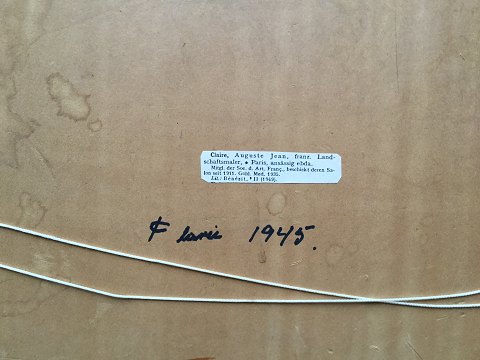 Auguste Jean Claire (1881-1970): Landskab med kvinde der malker ko 1945. Oliekridt på papir. Sign.: AJ Claire - 45. Fransk kunstner. Indrammet med lidt nusset passepartout. 39x49 (45x55)
