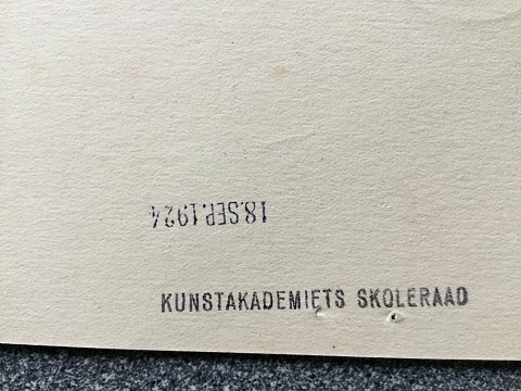 Bagpå - Stempel fra Kunstakademiets Skoleråd 18. sept. 1924.
