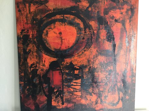 Ubekendt kunster (20 årh): Abstraktion. Akryl på lærred. Sign.: Utydeligt signeret (kan nogen hjælpe?) Uden ramme 80x80