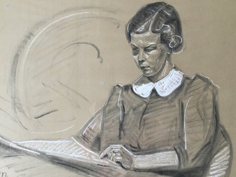 Portræt af læsende og siddende kvinde 1936.