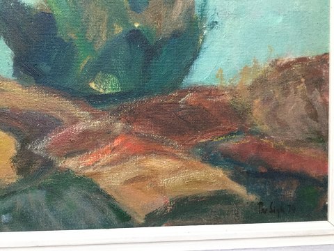 Per Sigh (1945-2013): Parti fra Flyndersø ved Hjerl Hede 1974. Olie på lærred. Sign.: Per Sigh Stempel bagpå - Læge Per Sølvsteen Sigh, Aarhus. 52x66 (65x79)