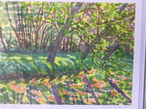 Linda Watson (20 årh): Litografier på papir. Begge signeret - L. Watson Febr. 2010. Litografi 1: Titel - Trees by Lake" Litografi 2: Titel - "Shaded walk" Begge 26x33 (29x36)