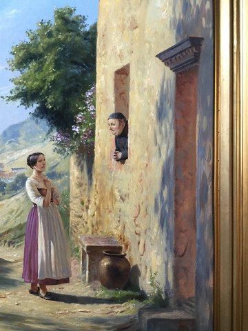 Sydlandsk landskab med kvinde ved kloster