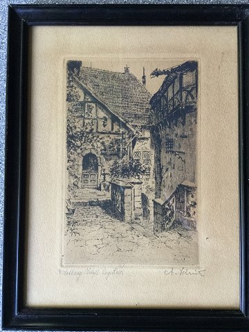 Anton Schütz (1894-1977): 2 raderinger fra Wartburg i Eisenach, Tyskland. Begge betegnet Wartburg og Original radering. Begge signeret - A. Schütz 21x16 (23x18) Martin Luther boede i Wartburg 1521-22.