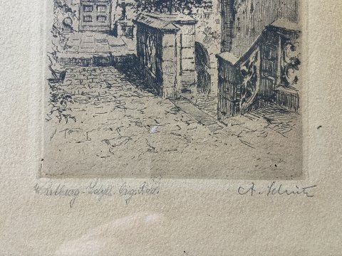 Anton Schütz (1894-1977): 2 raderinger fra Wartburg i Eisenach, Tyskland. Begge betegnet Wartburg og Original radering. Begge signeret - A. Schütz 21x16 (23x18) Martin Luther boede i Wartburg 1521-22.