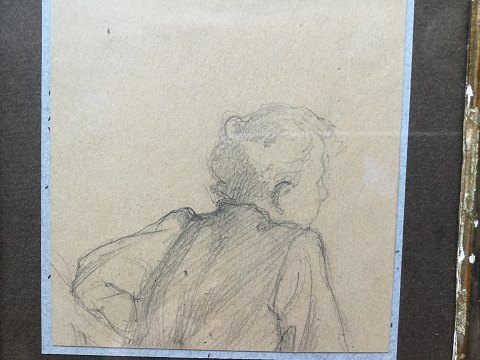 Frans Schwartz (1850-1917): Rygvendt kvinde. Bly på papir. Sign.: Usigneret Indrammet i smuk, antik sølvramme. 12x12 (19x19) Schwartz var uddannet fra Kunstakademiet i København 1866-72.