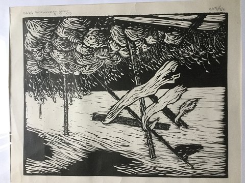 Træsnit på papir.