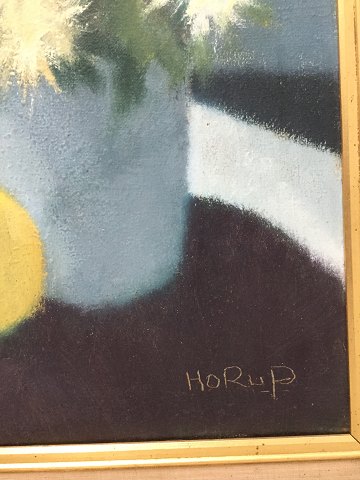 Knud Horup (1926-73): Blomstervase på bord ved vindue. Olie på lærred. Sign.: Horup 70x60 (84x74)