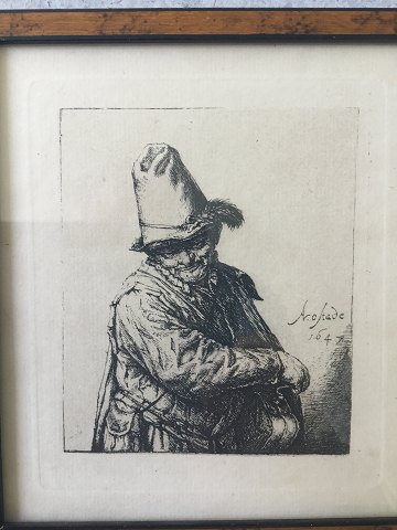 Adrian van Ostade (1610-85): "The Organ Grinder" - Lirekassemanden. Radering på papir. Sign.: A.v.Ostade (i trykket) Senere tryk. Indrammet i smuk birketræsramme Trykfladen - 12x10½ Indrammet - 16x15