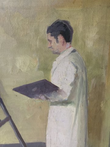 Jf. Malersammenslutningen af 1927's katalog i 1941 har maleriet nr. 427 på udstillingen med titlen "Maleren arbejder" (se fotos)