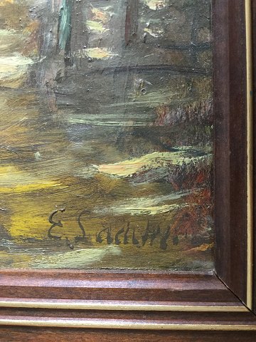 Ubekendt kunstner (20 årh): Allé i efterårsfarver. Olie på plade. Sign.: E. Lach.... 25x19 (32x25)
