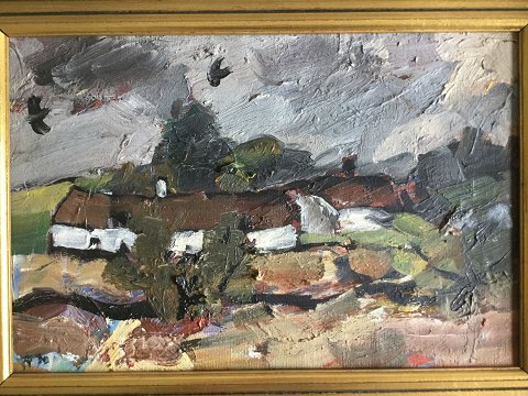 Landskab med gårde, marker og fugle 1974.