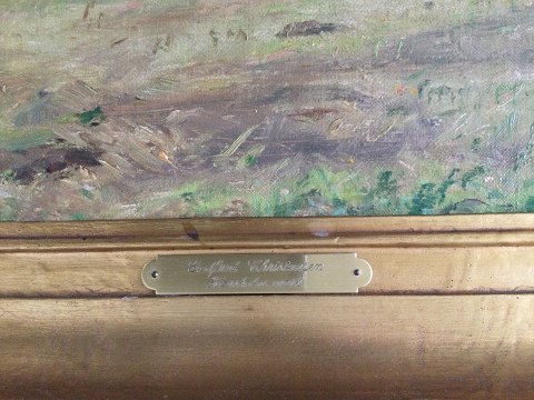 Bagpå blindramme: "Landskabet Hørsholm Mark 1905 og Mark og Køer gennemarbejdet 1908 Godf. Chr."