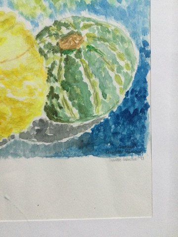 Charlotte Fabricius (20 årh): Græskar 1993. Farvelitografi på papir. Sign.: Charlotte Fabricius '93. 34x26 (50x40)