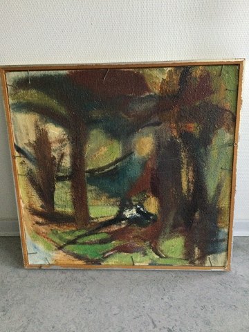 Parmo Baslund (født 1928): Køer på mark. Olie på tyk og tung plade, Sign.: Parmo Baslund Bagpå plade - Abstraktion i olie (se foto) 60x63 (63x66)