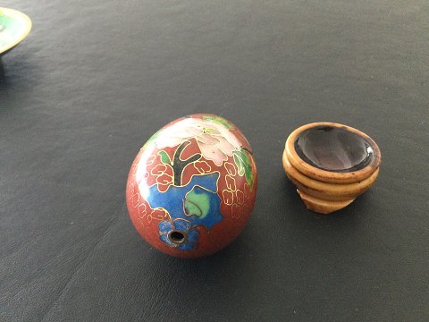 Flad asiet med resedagrøn fond med opstilling med vase.