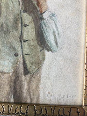 Carl Møldorf (født 1885): Gammel mand med pibe 1946. Akvarel på papir. Sign.: Carl Møldorf. Indrammet 33x23