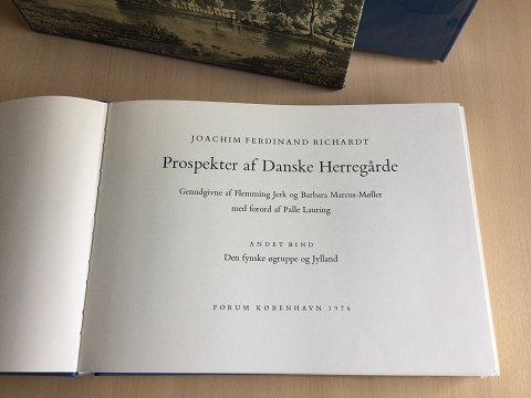 J.F. Richardt: Prospekter af Danske Herregårde. 1976 2 bind i original kassette og originale plast omslag. Hellærred med top guldsnit. Meget pæn stand.