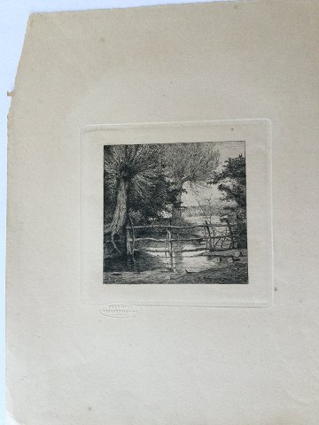 Otto Haslund (1853-1917): Piletræer ved en indsø 1865. Radering på papir. Sign.: Otto Haslund (i trykket) Betegnet - Ved en indsø 1865 Uden ramme DDRF 1870 Bladet måler 29x23 - trykfladen 12½ x 13 27121