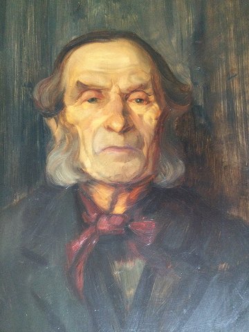 Portræt af gammel, tysk mand med kindskæg og rød halsklud.