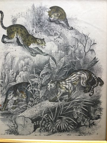 4 rovdyr af kattefamilien 1849, bl.a. Javaleopard, Nepalesisk kat og Pampas kat.