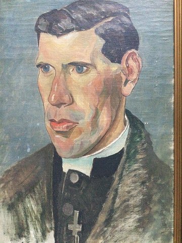 Bagpå rester af gammel udstillingsmærkat "Oktober udstillingen Kunstbygningen...."